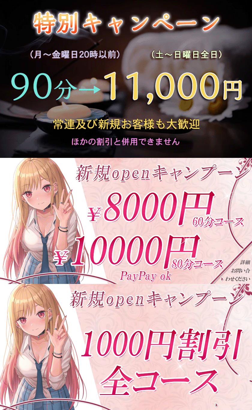 当店は、疲れた男性の強い味方として、気軽にご利用できる店として、皆様の疲れた心と体を癒していきます。疲れを感じた時には、お仕事の隙間時間やお仕事帰りなどにお気軽にお立ち寄りください。癒し系セラピストによる癒しタイムをぜひお楽しみください。皆様のお越しを心よりお待ちしております。